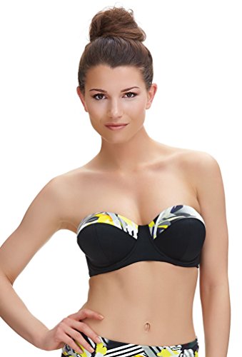 You'll be sure to turn heads as you lounge by the poolside with Freya's new striking collection, Beziers. An exclusive European designed placement print range with a contemporary twist, and scattered across a monochrome geometric print background, flowers bloom in bursts of citrus tones. The Bikini Top features powernet wings for anchorage and support, with a gorgeous Bandeau shape with an integral foam cup bra for improved shape and support, with a stunning black base print at the neckline, and concealed stitching for a clean, stitch free neck edge, and a wide clasp for additional support, with detachable, fully adjustable, multiway straps allowing cross back and over the shoulder styles. Recommended hand wash only. Available in sizes DD, E, F, FF, G. Co-ordinates with the gorgeous Fantasie Beziers Classic Fold Brief, sold separately. Materials: 81% Nylon, 19% Elastane.