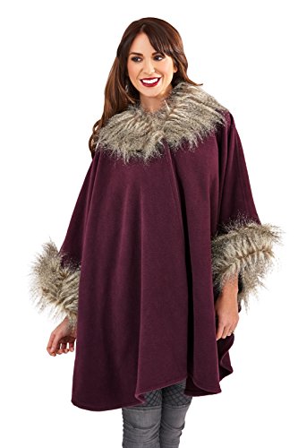 Luxury Fur Collar Wrap Shawl This designer inspired shawl has many uses and can be worn as a shawl to keep warm instead of a heavy coat or a wrap on a night out, perfect for Christmas parties. You can also add a belt to create a poncho, just perfect for hitting the shops in. The wrap opens at the front and is fastened with a button, it is trimmed in luxury faux fur along the collar and cuffs. A great classic item that will never go out of fashion. An exclusive design you will not find anywhere else, we only have a few pieces so BUY NOW to ensure you grab yourself one. These wraps are available in ONE SIZE - In a choice of 10 colours: Fuchsia, Plum, Burgundy, Bottle Green, Light Blue, Arran, Navy, Grey, Red and Black. * High quality Wrap / Poncho / Shawl. * RRP £39.99. * 100% Acrylic. * Packaged with care in tissue paper and in protective bag an then again with outer strong tamper proof packaging.